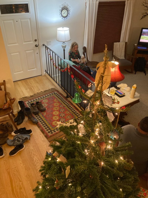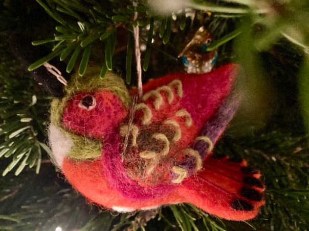 Lori took the initiative to find this felted hummingbird ornament among the things her family had brought, and gave it to me early. She had seen other hummingbirds on the tree and didn’t want to delay.