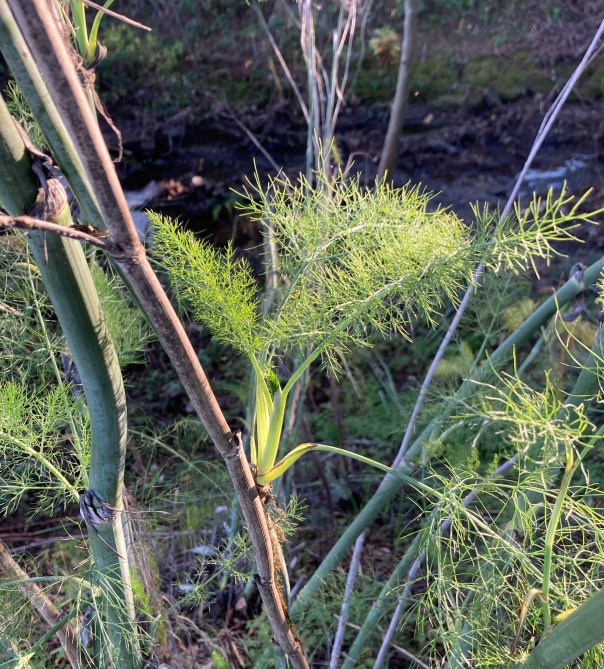 The tender fennel ferns are popping out greenly.