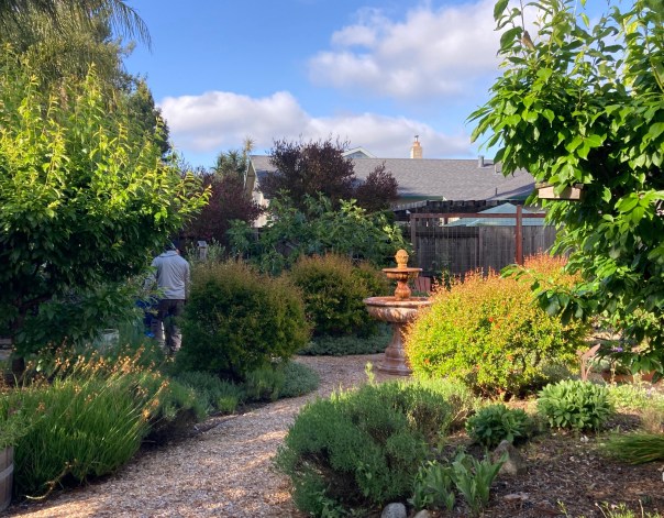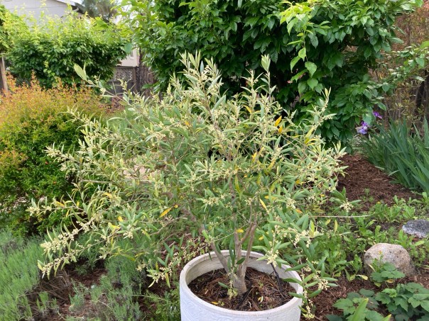 There are too many things I want to tell about, having to do with my beloved garden. They will have to spill over into another post, soon. I do want to say that I often think about how much my late husband would have liked this garden. I’m pretty sure he would be, or is, very happy that I took out the swimming pool and managed, with a lot of help, to create this special place. My heart is singing — and the olive trees are in bloom.