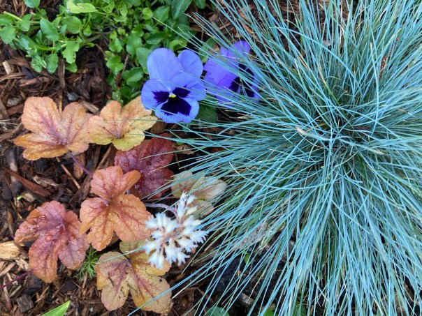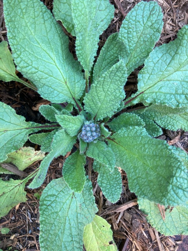 remembered I had wanted to take a picture of the rudbeckia, even though it is far from blooming; it’s huge, and so robust — much bigger than I imagined it would get, when I planted it last fall. I didn’t take its picture after all, but I did notice that my eight butternut squash plants nearby looked a little dry, so I dragged the hose over and gave them all a long drink. The pansies needed deadheading, so I did that as well….