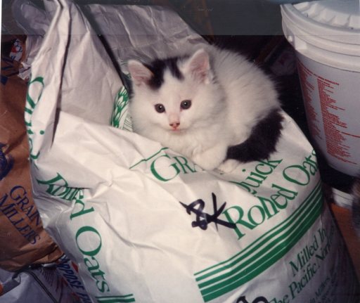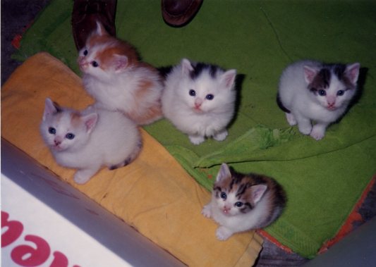 Aren’t her kitties darling? The father was a Turkish Van. We decided to keep the fellow in the middle of this group, and named him Mackenzie. This was before all Mackenzies were girls. He reminded me of a polar bear and therefore the name of a river in snowy country seemed right for him.
