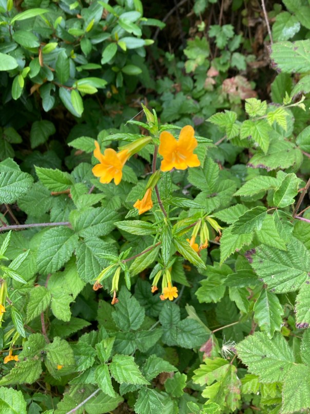Pathfinder joined me in noticing various plants and talking about what they might be. He demonstrated to the nephews how the fennel fronds are pretty tasty for munching on, and he knew this flower that I didn’t, the Twinberry Honeysuckle: