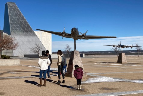 First a trip to the Air Force Academy in Colorado Springs, where before we took in a planetarium show, we looked at statues of historic airplanes, and one uncle set the older boys to racing.