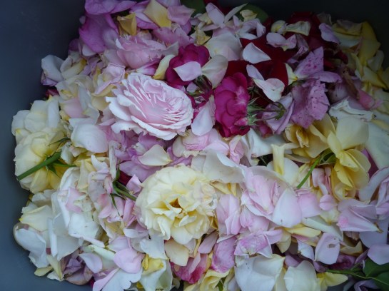while in the hot sun on Friday and Saturday, enjoying the pungent smell of the santolina that I was shearing down to stubs. It reminds me of the sagebrush of the desert or the bushes that grow at the beach. I met this mantis there. After I studied him and followed him for a while I had to get back to work, and I couldn’t notice if he went into the lavender or the rosemary, both of which had more hiding places remaining. I wonder which herby scent he likes best?