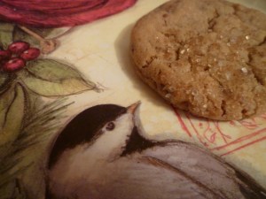 Everyone loved these cookies. If that bird were real, he would have eaten the whole cookie by now. But he is painted on a pretty tray that May gave me for Christmas.