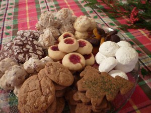 But now by what is the Seventh Day of Christmas, as I finish up this post, and also New Year’s Eve, I’ve expanded the festive feelings by eating lots of cookies, too! They all taste as good as they look, or better. The last red plateful will go out of here this evening — I wish I could bring one to your house when I say Happy New Year!