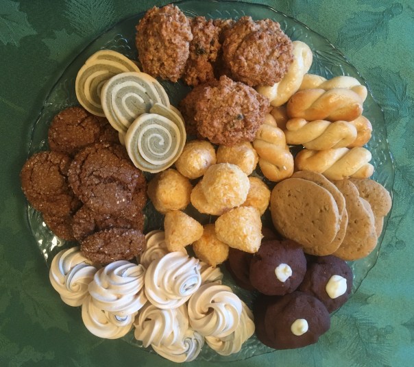 Those bright-white round cookies are our only store-bought item, Pffernusse from Trader Joe’s that Mr. Glad wanted to try in memory of the cookies his German grandmother used to make.