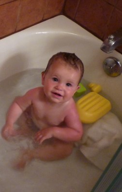 For a few days I helped out the family of Soldier and Joy, as grandmas like to do when new babies are around. I mostly played with little Liam. (Scroll down fast if you can’t wait for the Liam-related pics.) We took walks around their neighborhood, in the Sacramento area where the hot summers make for some lush landscapes. In their very own back yard live two or three real orange trees, and guess what? It’s orange blossom time right now.