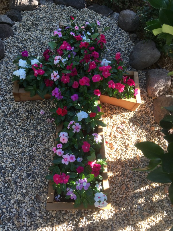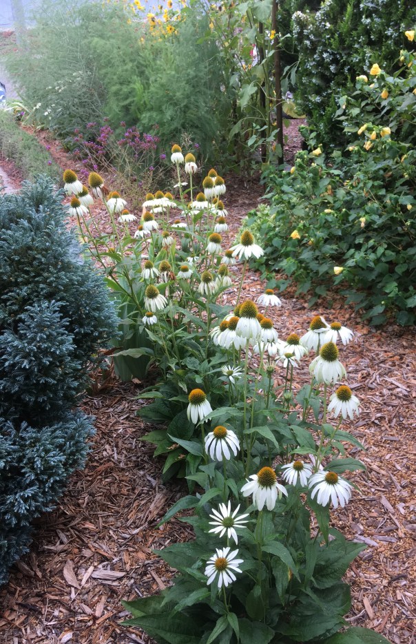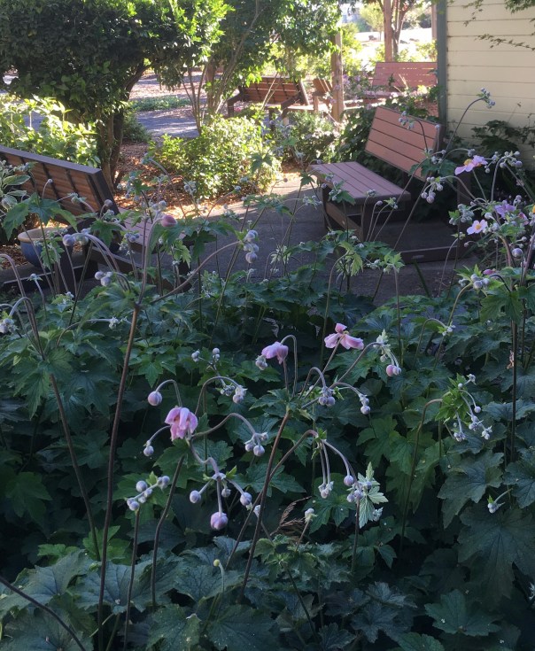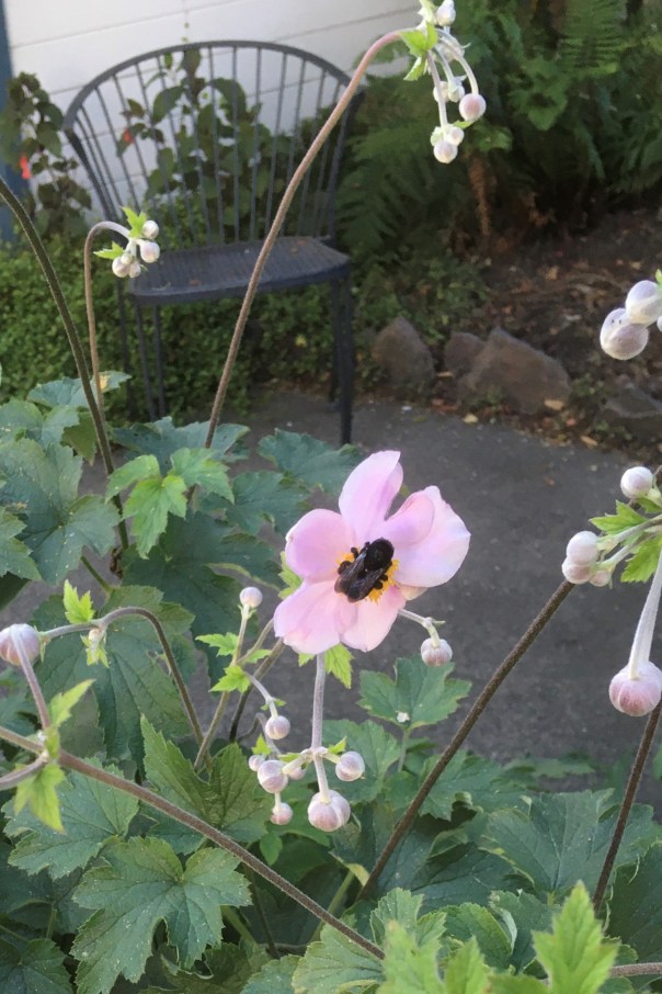 When the zucchini was gone this flower was revealed, its bloom pristine though its leaves are sooty. My Seek app can’t identify it, and I don’t recall seeing such a plant here before.
