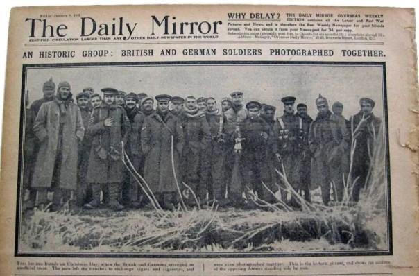 There’s someone coming towards us now, the front line sentry cried. All sights were fixed on one lone figure trudging from their side. His truce flag like a Christmas Star shone on the plain so bright As he bravely trudged unarmed into the night.