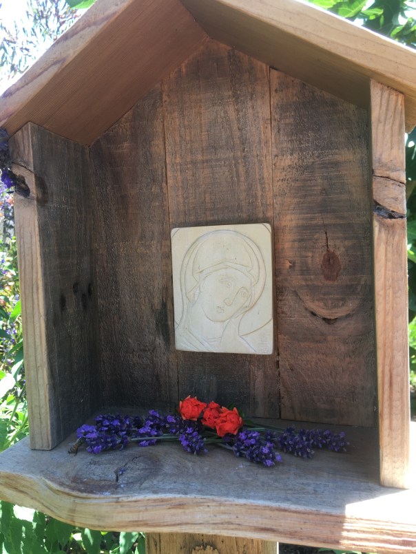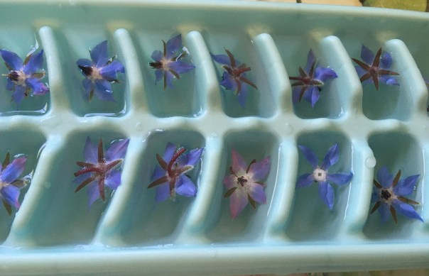 Today was the day we celebrated St. Joanna, and it was also the meeting of our parish women’s book group — in my garden! The weather was as perfect as could be for that. Our group of six included several gardeners who didn’t sit down until we’d discussed borage and the borage flowers hanging into the pathway. The bees draw your attention to them! I quickly dug up a few of the many little borage volunteers for a couple of women to take home later.