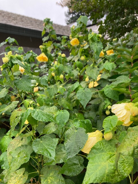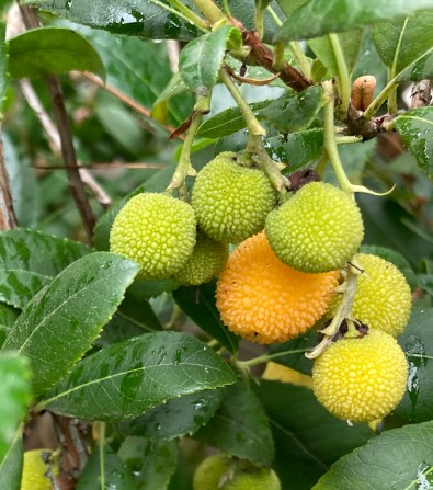The arbutus we call the strawberry tree has both unripe fruit and blossoms as well. I remember the grandboys on a ladder picking the fruit one Thanksgiving, so those treats are yet to come as well.