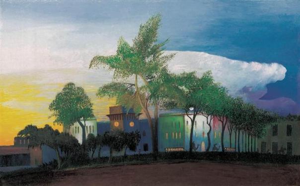 So I went along and along, and saw a rainbow pancake of light on the northern horizon, a very slim break in the clouds way beyond a field of melons.