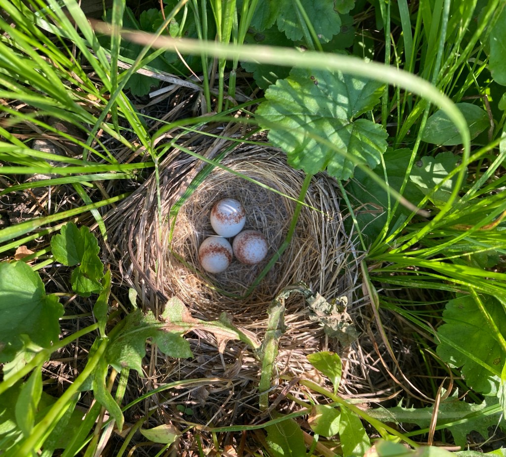 This morning I got out into the fresh fresh, rain washed air, still damp and loaded with nourishment from a mysterious and secret recipe, and I walked to and along the creek, and heard an unfamiliar and curious bird song. I wasn’t prepared for that, not having my phone and its Merlin bird app with me — I was trying to be a little bit un-modern.