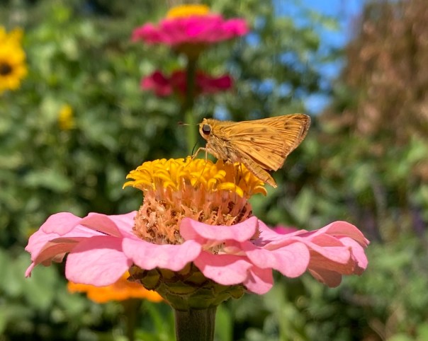 I watched the skippers on the zinnias,