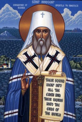I started writing what I intended to be a short introduction, on the feast day of the canonization of St. Innocent, to a quote from him that I found in our church bulletin. I began to wonder if the quote (below) was from the guide Fr. John wrote in Aleut and Russian in 1901, Indication of the Pathway into the Kingdom of Heaven. I discovered that the whole article on the Christian life is available to read on the site linked, but the quote doesn’t seem to be from that work.