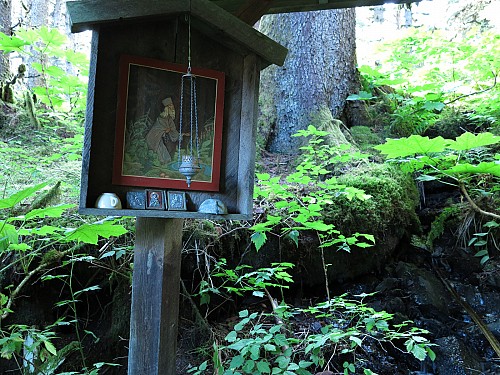 “… very early in the morning, five priests with Archbishop Kiprian go to Spruce Island where for almost thirty years the Elder Herman lived as a hermit. And I know that we have never in our lives experienced anything better, purer, more joyful than what we’ve experienced there that morning: the walk through the wooded paths along the towering evergreens keeping their eternal vigil before their Creator, to the little chapel over the cave of the elder, and the liturgy in that chapel. I served the liturgy; but to say this is totally inaccurate. The liturgy served itself. It was only necessary for us to give ourselves to it completely, to immerse ourselves in it, to enter into the thanksgiving without reservation. I know as well that we did not deserve this at all but that it was given to us as a gift. I can only pray that it will also be given to us to preserve but the smallest portion of this gift of grace.”