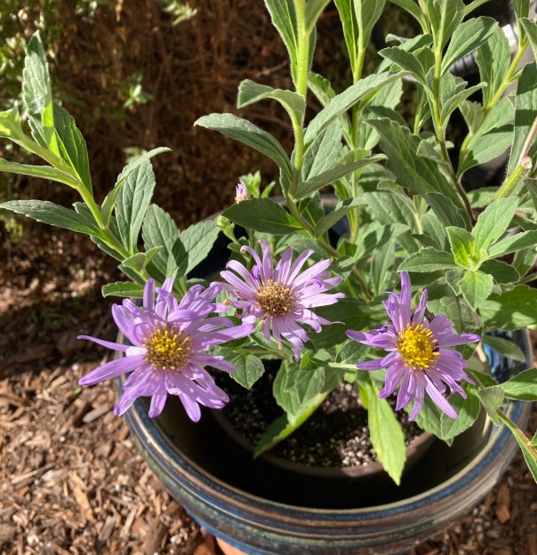 (I’m reposting this from five years ago. Every September, many, many people still find the poem below on my blog. This fall, for the first time, I am pleased to say I have acquired a purple aster to enjoy for the next couple of months, and have installed it by the front door.)