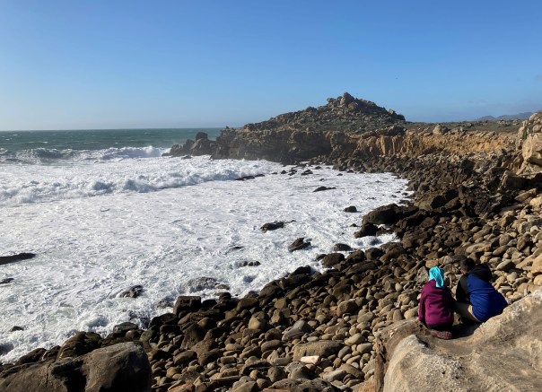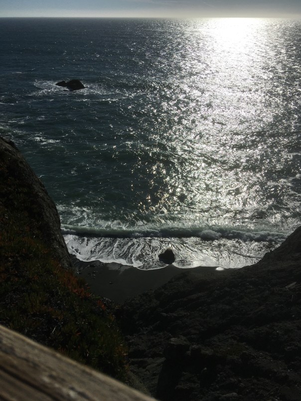 At Salt Point the sun shone on us brilliantly, and made us squint. The wind pushed us this way and that, and the sound of crashing surf thundered up the cliffs to where we walked along the headlands. Some of us had gaiters around our necks, which we pulled up to keep our hair out of our eyes and our cheeks warm.