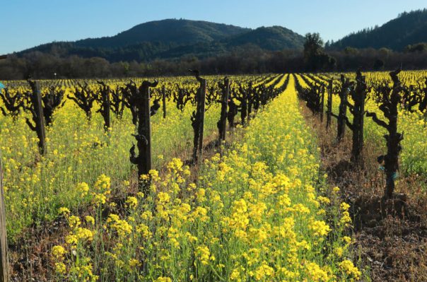 Yes, that mustard above ismustard, and in this context it isn’t considered a weed that needs eradicating. It actually helps suppress the nematode population among the grapevines, because mustard contains high levels of biofumigants in the form of glucosinolates. Evidently the sharp flavor isn’t appreciated by the nematodes. However the mustard got there, it’s ubiquitous now, and beneficial.