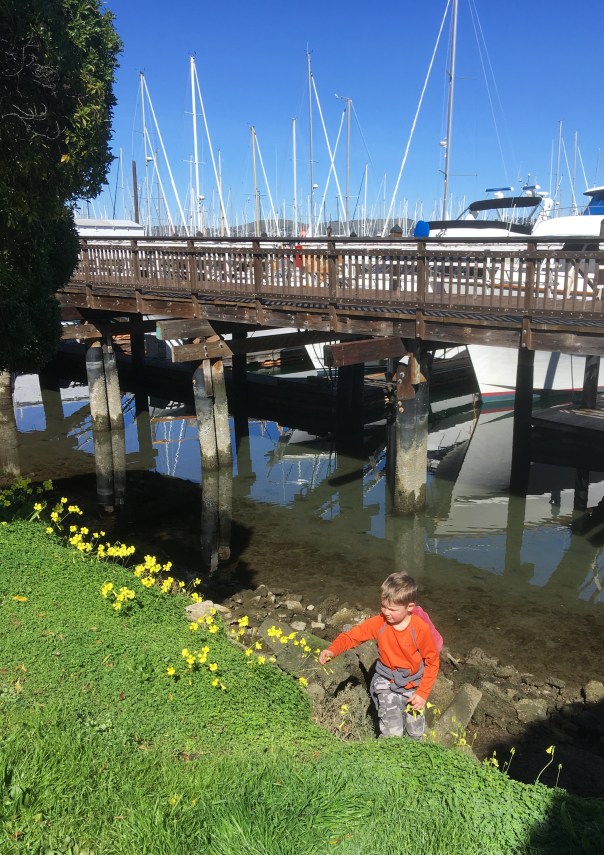 So we went into the town of Sausalito and looked at boats in the harbor, and ate our lunch at a little park with a view of Angel Island, and the Bay Bridge to the southeast.