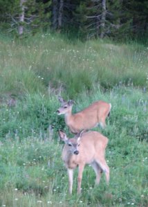Next to the Tuolumne Meadows Bridge, I took many pictures of these does and their two buck friends who were close by. The lighting was poor, and I was too far away, but I had to try. You know I love deer.