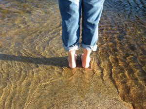 I waded in the Tuolumne River, where two streams came together over a slab of granite that wasn’t too slippery, if I were careful. I was.