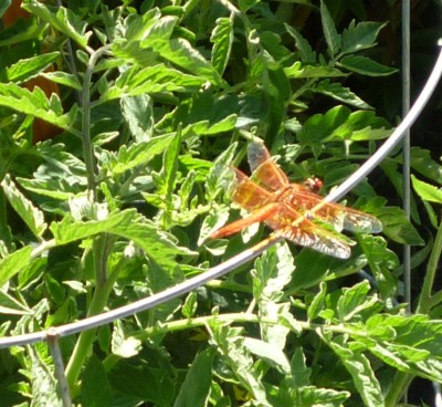 An orange dragonfly posed for a picture.