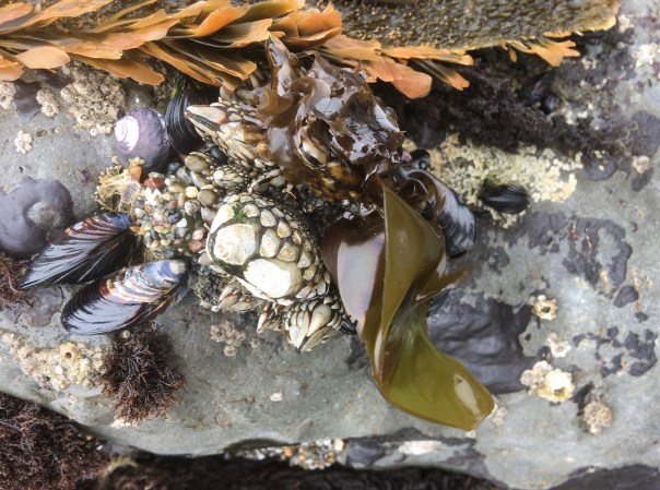 I was so surprised. All the times I’ve been on that beach, and I never knew… It was the most interesting collection of creatures I’d ever seen in tidepools. And all around, new plants as well. Thousands of mussels grew crammed together on the rocks.
