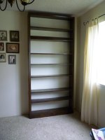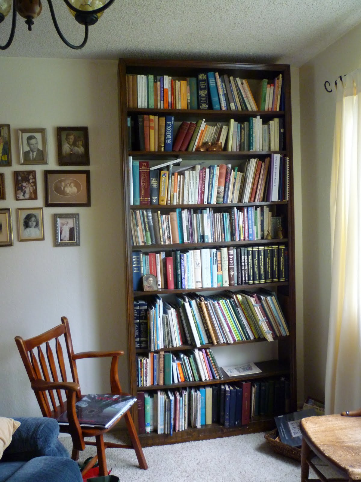The research gives a lot to think about–and I would write down my thinking, too, if I weren’t embarking more intensely now on a very different sort of work, that of remodeling our kitchen and downstairs floors and ceilings. Just look at this bookcase that has been denuded! A pitiful sight.