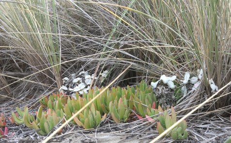 Believe it or not, I have the plant above, with the whitish leaves, in my garden. I bought it a the native plant nursery years ago, and knew it was a beach plant, but I’d never seen it before in its natural habitat. I recognized it immediately. I won’t worry about my plant anymore. It looks more spindly than these but otherwise … yeah. And I don’t know its name.