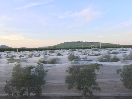 In response I made a little road trip last week, and spent time in Tulare, Kern and Fresno Counties, smelling citrus blooms and visiting with family and friends. I stayed with my sister Nancy, the farmer, who lives in the middle of the groves of trees that she and her husband care for. The Sumo mandarins that directly surround them were just about to bloom, so they had recently been covered with bee netting.