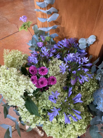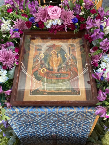 There were plenty of flowers on the Feast of the Dormition yesterday, to celebrate Christ’s mother. We always have flowers, and extra for feasts, but the tradition is to have extra-extra for Mary: