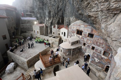 “Orthodox Christians from around the world attended a rare Liturgy at an ancient monastery in Turkey… at the Sumela monastery in Trabzon province, north-eastern Turkey. At least 1,500 pilgrims, including people from Greece and Russia, traveled to the Byzantine-era monastery. The service was the first Greek Orthodox Liturgy to be held at the shrine since 1923, after the Turkish government allowed pilgrims to worship there once a year in a gesture toward religious minorities, in line with Turkey’s aspiration to join the EU.