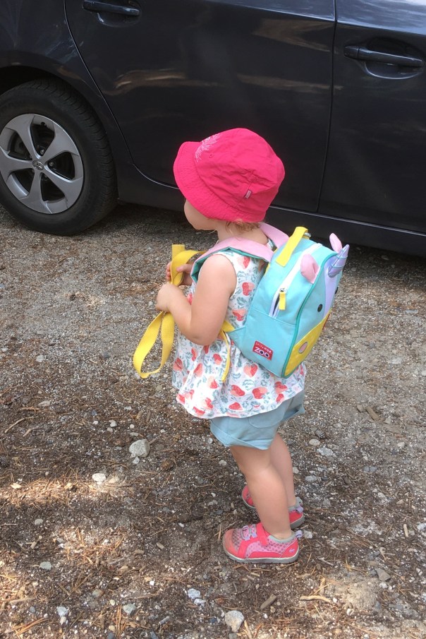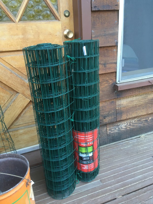 If you look closely at the railing in the second photo from the top of this post, you might be able to see the green fencing that has been installed over it, for the protection of little ones and the peace of mind of their elders. Lora could freely run around in and out of the cabin at will, and she did. I held her up above the railing so she could throw seeds down to the chipmunks that scurry around under the deck.