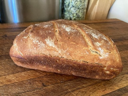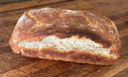 The crack is not big enough that the slice of bread falls apart, and the crumb is nice and “custardy.” With a little more experimenting, I’m hopeful of developing a recipe that will work with my style of homemaking and cooking, and be somewhat reliable. If it can be sourdough, all the better. And if anyone has a theory about the crack, please let me know. Becoming a professional baker, or adopting a systematic, precise and scientific baking personality — that is not going to happen.