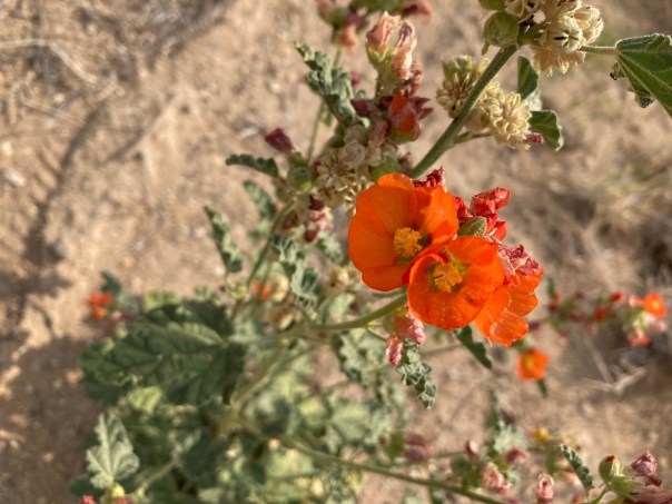 A bright orange flower stood up above these little spires in a few places, the Desert Globe Mallow: