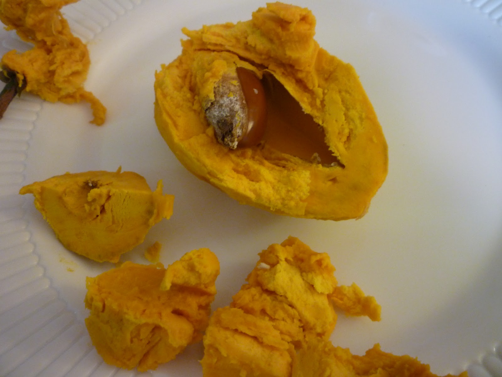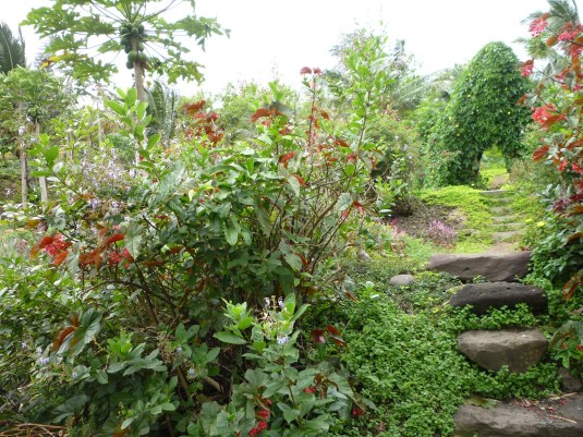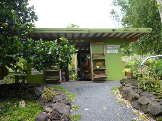 I bought mangoes, and an eggfruit, a.k.a. canistel. And while my husband sipped his coffee I snapped pictures of the garden and farm in back, and mentioned to the girl working there, “A friend told me before we came that Maui is a paradise — and he was right.”