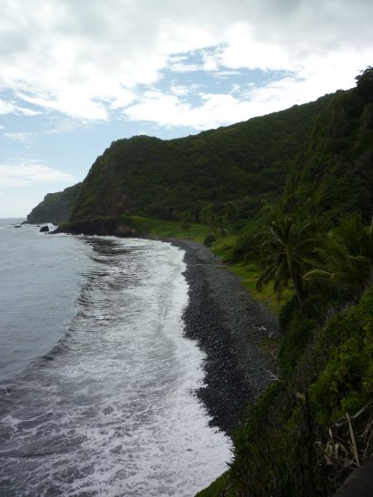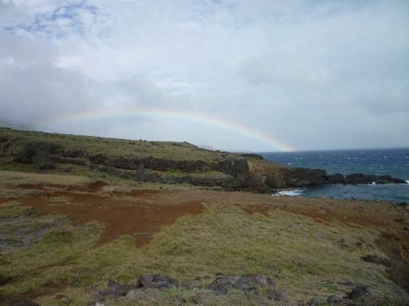 Mr. Glad discovered a rainbow behind us, and I let him do the honors of capturing that extra blessing of our adventure. Lacking a scratch-and-sniff feature on my computer, or any kind of words that can do justice to this stretch of coastline, I’ll let it be The End of this day’s diary of Maui.