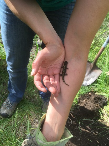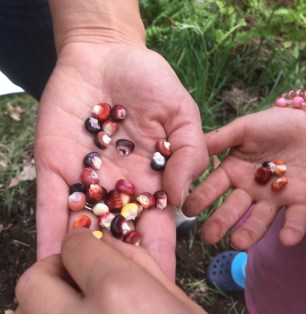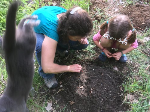 I had fun with Bella the other day at the community garden where she tends a plot. We always like to look around at what the other gardeners are doing, and to forage along the edges where people plant offerings to the whole community who farm there; you might find raspberries, or cutting flowers, or kale ready to harvest and take home.