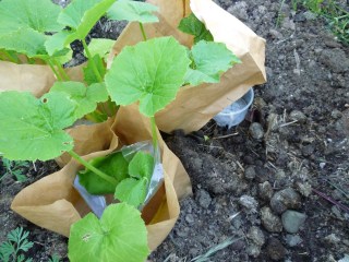 The fig tree towering over my garden is loaded with fruit — but wait, what is wrong here? The figs are turning purple while they are still very small; they stay hard, they stay small, and they fall on the ground. You can see in the photo below how they don’t have enough water content to droop at all, and the sign of a ripening fig is that it droops more and more on its stem until it is hanging quite limp and juicy and sweet. I am distressed about the situation, but from what I’m reading the tree has been stressed. And I think I know why.