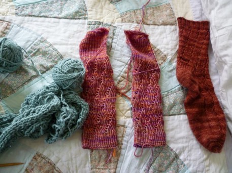 We’ve been having nice warm weather for a week or so, but at this moment it is raining. This afternoon the sun was shining and I had a young family for lunch. The children played in the garden and the playhouse, arranging salads on the little plastic plates. They’d collected snippets of parsley, mints, cherry tomatoes, rosemary, lavender, and even kale, and to top it off, asked me to cut up a lemon for them to squeeze over. They liked their salads better before the addition of lemon.