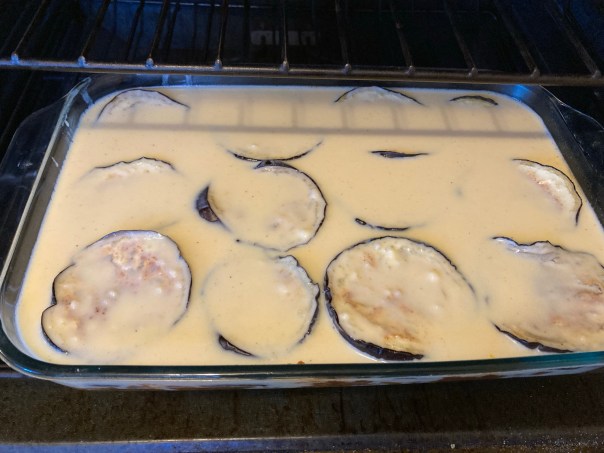 …but on this occasion, I ended up slicing them on top, brushed with butter and sprinkled with parsley and cinnamon, to take to a potluck. Sorry, the photo shows the dish before it had its final heating in the oven, and the butter is still solidifying on the cold yams. That evening the yam slices were gone before the stew itself.