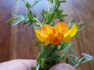 Today Mr. Glad and I were out in a different part of the neighborhood, and there was my flower growing in a sidewalk crack. I grabbed a bunch and brought it home. Here is its picture. I don’t have time to research this thoroughly right now but I’m putting up my pictures for Katie and anyone else interested to see. They are cute little flowers in any case and a welcome break from ugly thistles and puncture vines.