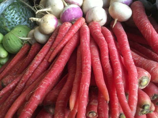 Are those red carrots really carrots? I’ll cook them today and find out.
