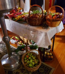 At the end of the service, with the prescribed prayers for the event, our priest (and all of us) thanked God for all His bounty, and then he sprinkled holy water over the representative sampling.
