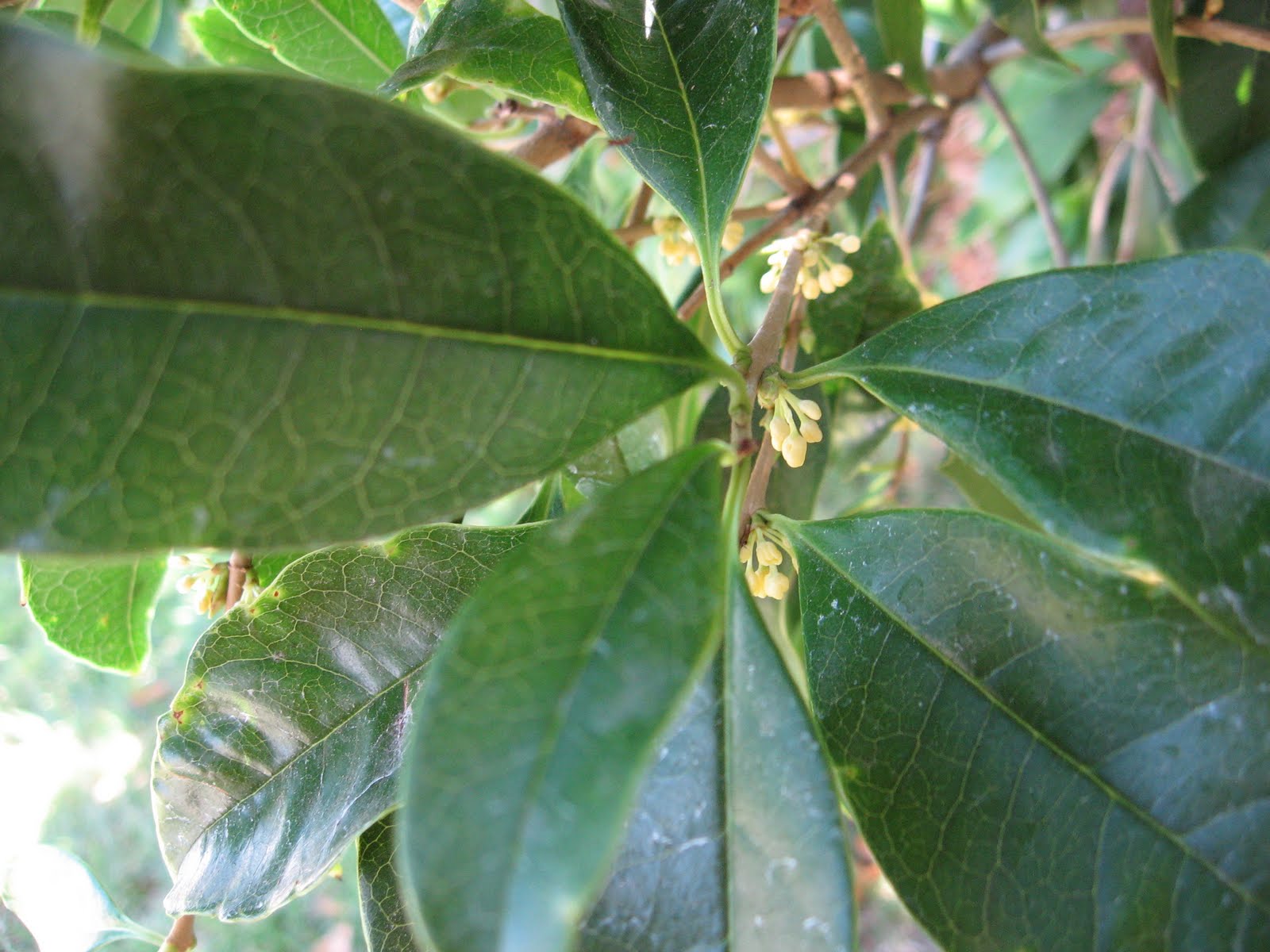 Today is her birthday, and I only want to post this small bit. And as delicious smells are so often linked to her sweet memory, I will also share with you a bush that didn’t grow in her yard, but does grow in mine: osmanthus, or sweet olive. When it blooms several times a year, a few feet from our front door, the fragrance is like dew from a benevolent Heaven, or incense in church. I know God loves me, when I walk out the door and that smell greets me.