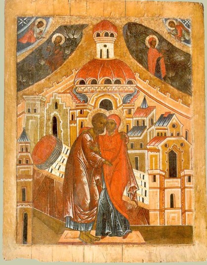 “The very interior of an Orthodox church introduces the body into a space that is different from the ordinary; it is a space transfigured and sacred, whose profound symbolism is superbly analyzed by St. Maximus the Confessor in his Mystagogia. He stresses in particular that the church’s spatial structure symbolizes the human being: the altar representing the spirit, the sanctuary the soul, and the nave the body. Conversely, the human being symbolizes the church: his spirit is, as it were, an altar; his soul, a sanctuary; and his body, a nave. And this is not simply by their nature but by their own specific functions in spiritual life: the body represents in particular the practical or ethical dimensions; the soul stands for the contemplative dimension; and the spirit its pinnacle, theologia, in which the believer receives from the Holy Spirit supernatural knowledge of the divine mysteries.”