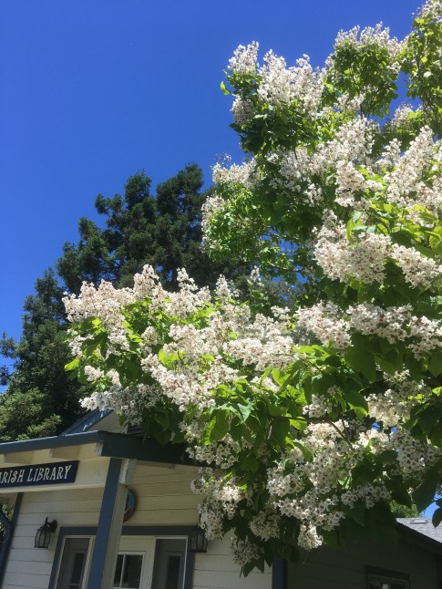 *Wowing over the catalpa tree at church. Each flower is like an orchid…