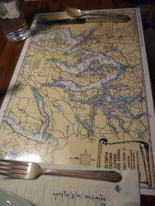 On our way to the Lake Quinault Lodge we got lost and spent a couple of hours getting back in the right direction. Rural Washington doesn’t have as many road signs as one could want, and of course, there are all those waterways that confused me when I was trying to be B.’s navigator. Robinson Crusoe didn’t have all this complexity of terrain, and what he had to deal with, he also had time aplenty for. Again, from G.K.C., “What dullness there is in our life arises mostly from its rapidity: people pass us too quickly to show us their interesting side.” Canals and roadsides, too, I find.